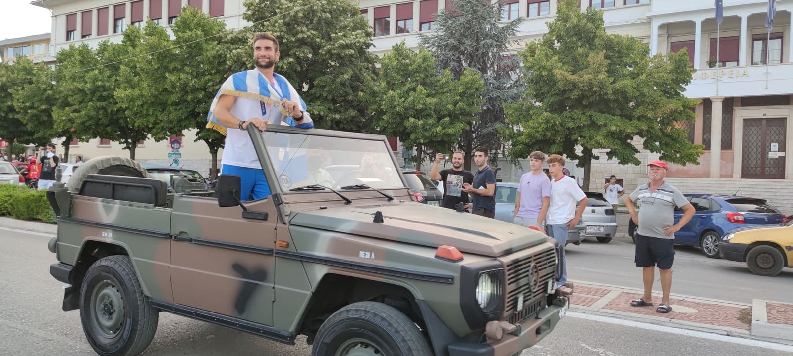 «Αυτό το μετάλλιο ανήκει στην Ελλάδα, ανήκει στην πόλη, ανήκει σε όλους σας» ανέφερε ο Στέφανος Ντούσκος, ο οποίος αποθεώθηκε από εκατοντάδες κόσμου που είχε συγκεντρωθεί στην πλατεία.