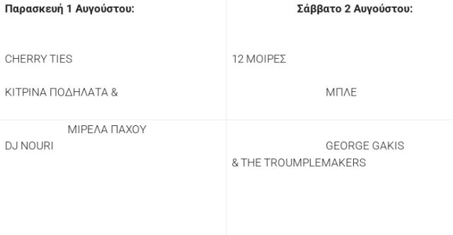 Το συγκρότημα των ΜΠΛΕ δεν χρειάζεται συστάσεις! Διαχρονικά τραγούδια και ιδιαίτερος ήχος, με την απόλυτη Frontwoman Τζώρτζια Κεφαλά,να μας συνεπαίρνει με την ερμηνεία της σε κάθε συναυλία.