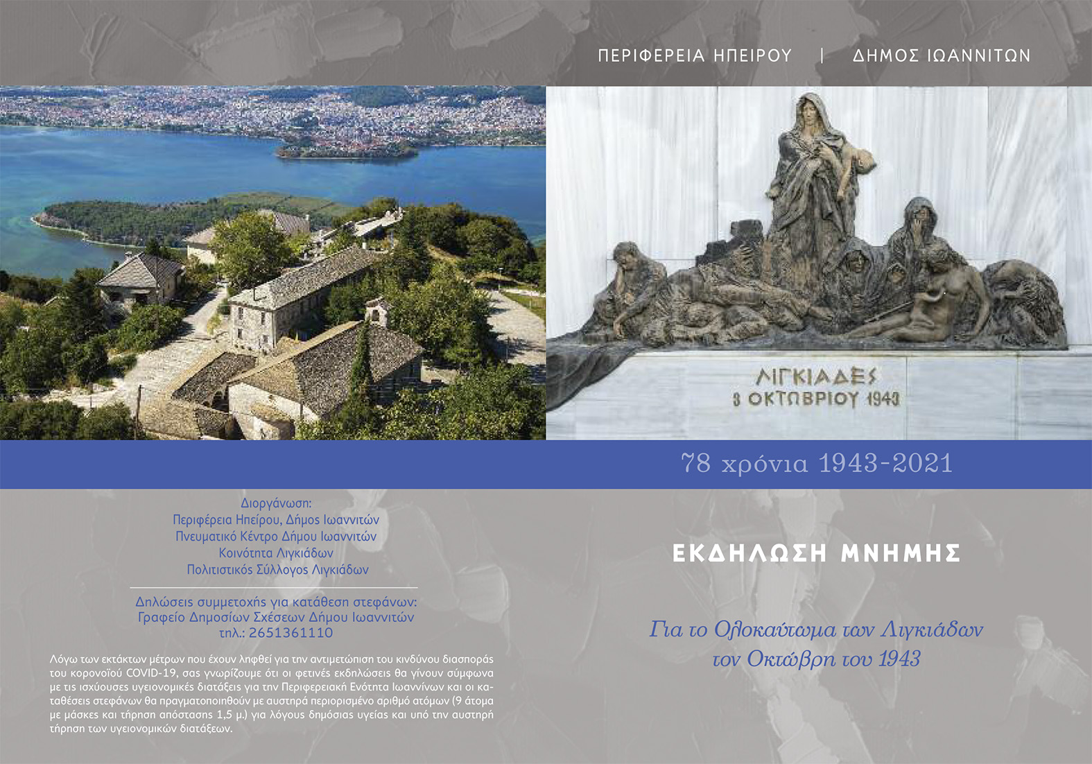 78 χρόνια συμπληρώνονται φέτος από το Ολοκαύτωμα των Λιγκιάδων, με τον Δήμο Ιωαννιτών να οργανώνει εκδηλώσεις μνήμης και τιμής
