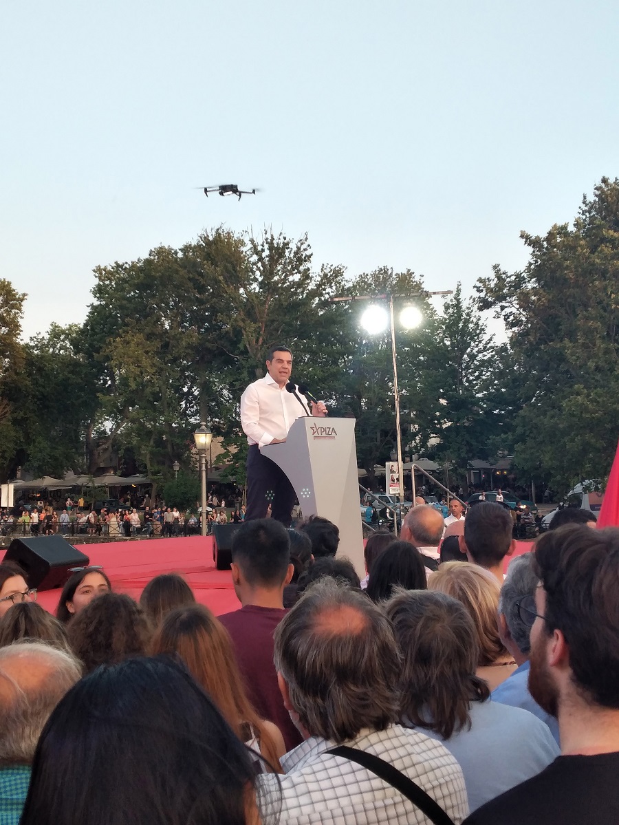 Ο πρόεδρος του ΣΥΡΙΖΑ ΠΣ εξαπέλυσε σκληρή επίθεση στον Κυριάκο Μητσοτάκη. Σχολίασε ότι «η απόσυρση από τα ήδη τυπωμένα ψηφοδέλτια της ΝΔ, του υποψηφίου της στη Ροδόπη κ. Κατραντζή, αποκάλυψε το μέγεθος μιας ακόμη χρεοκοπίας, μιας ηθικής χρεοκοπίας». Είπε ειδικότερα ότι «χρεοκόπησε σε δημόσια θέα η ανεύθυνη επιχείρηση εμπλοκής των ευαίσθητων εθνικών θεμάτων μέσα στην προεκλογική αντιπαράθεση, η απόπειρα, του κ. Μητσοτάκη να μετατρέψει το ευαίσθητο εθνικά θέμα της Θράκης σε κεντρικό θέμα της προεκλογικής αναμέτρησης», «χρεοκόπησε το εγχείρημα της μετατροπής, για άλλη μια φορά, της ΕΥΠ, σε προσωπικό εργαλείο του κ. Μητσοτάκη».