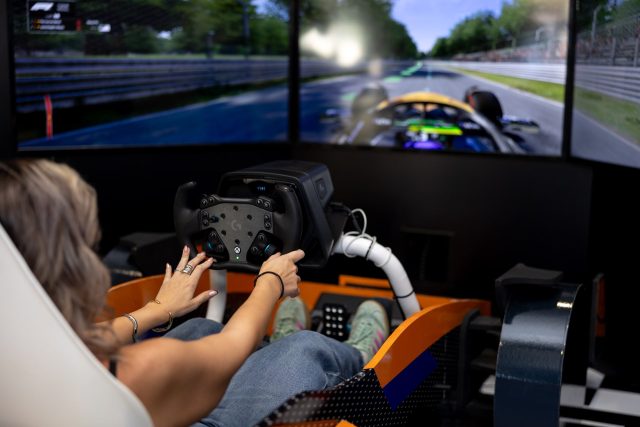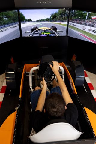 Με τρεις μεγάλες οθόνες και ήχο που θυμίζει κινητήρα αγωνιστικού αυτοκινήτου, ο προσομοιωτής μεταφέρει τους επισκέπτες σε όποια πίστα επιλέξουν για να ζήσουν μια αυθεντική εμπειρία Formula 1.