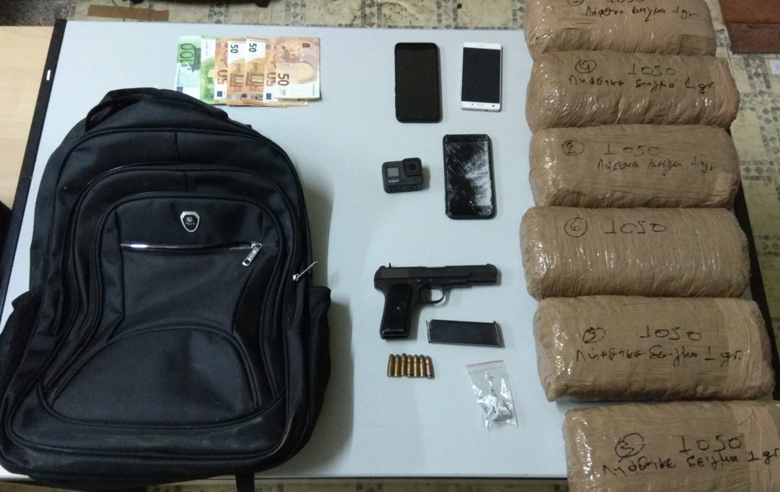 Κατασχέθηκαν 6 κιλά κάνναβης, πιστόλι, δίκυκλη μοτοσικλέτα και αυτοκίνητο