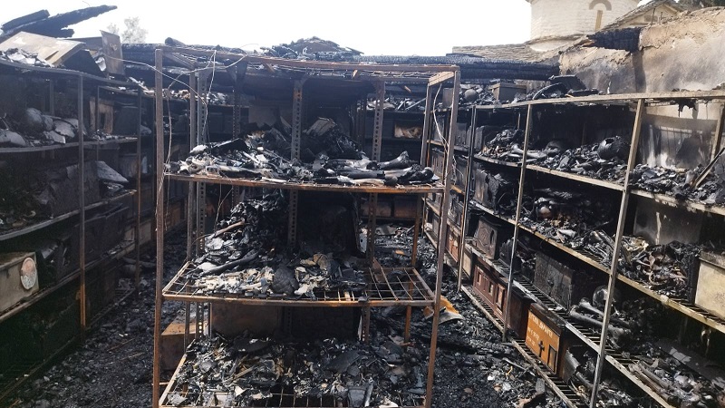 «Λυπάμαι ειλικρινά που δεν καταφέραμε να σώσουμε τα οστεοκιβώτια πλην ελαχίστων που ήταν κοντά στην πόρτα τα οποία καταφέραμε να τα τραβήξουμε έξω από το χώρο. Η καταστροφή είναι ολοσχερής γιατί όλα τα υλικά στο εσωτερικό του χώρου ήταν εύφλεκτα και μέχρι να έρθουν τα οχήματα της Πυροσβεστικής είχε ήδη γίνει η μεγάλη ζημιά», ανέφερε ο κ. Πατσούρας μιλώντας στο ITV.