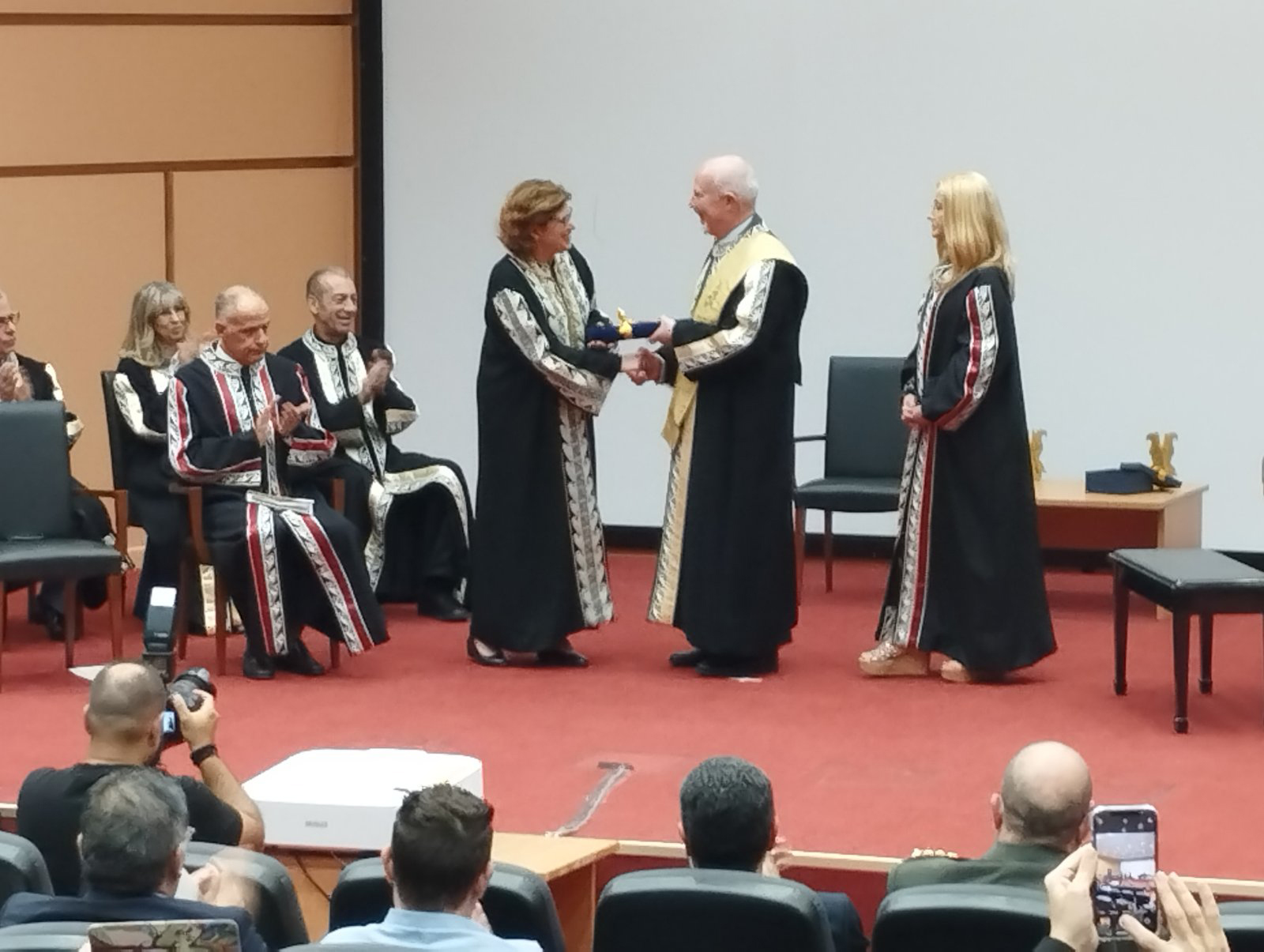 Ακολούθησε ο έπαινος του τιμώμενου προσώπου από τον πρόεδρο του Τμήματος Ιατρικής Σπυρίδωνα Θ. Κονιτσιώτη και η ανάγνωση του ψηφίσματος και στη συνέχεια η περιένδυση του τιμώμενου με την τήβεννο του Πανεπιστημίου Ιωαννίνων από την αναπληρώτρια κοσμήτορα της Σχολής Επιστημών Υγείας Ναυσικά Β. Ζιάβρα και η επίδοση του ψηφίσματος από την πρύτανη. Μετά την ομιλά του τιμώμενου προσώπου, ακολούθησε μουσικό πρόγραμμα με τον διδάκτορα Μουσικολογίας, τενόρο Δημοσθένη Φιστουρή, και τον κοσμήτορα της Σχολής Μουσικών Σπουδών, πιανίστα Αθανάσιο Τρικούπη.