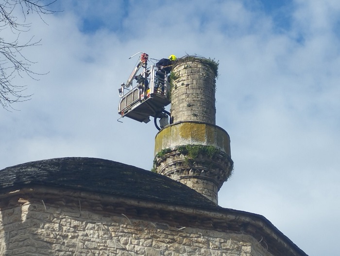 Τον ετήσιο καθαρισμό της φωλιάς των πελαργών, στο Τζαμί της Καλούτσιανης πραγματοποιούν οι υπηρεσίες του Δήμου Ιωαννιτών.