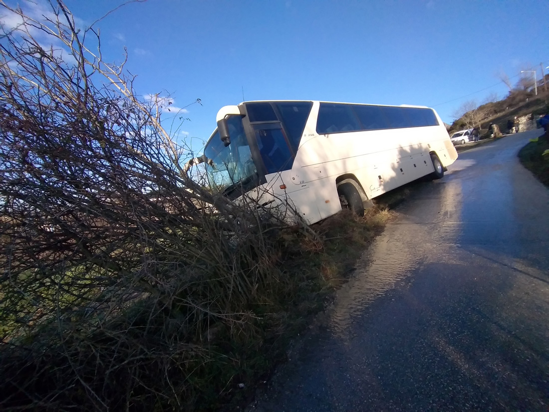 Τυχεροί στην ατυχία τους ήταν ο οδηγός και ο συνοδός του λεωφορείου που επρόκειτο να μεταφέρει μαθητές από τη Μάζια στα δημοτικά της Αμφιθέας και του Περάματος, όταν το όχημα έφυγε από την πορεία του λόγω του πάγου στο οδόστρωμα.