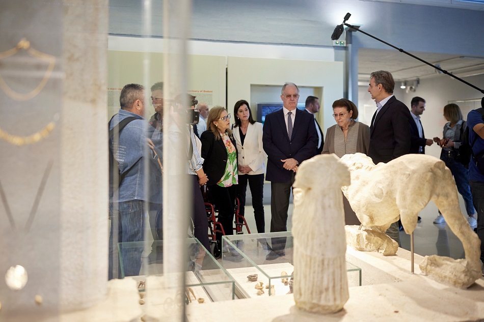 Ο Πρωθυπουργός περιηγήθηκε και ξεναγήθηκε στο χώρο από την διευθύντρια της Εφορείας Αρχαιοτήτων Άρτας και αναπληρώτρια διευθύντρια της Εφορείας Αρχαιοτήτων Ιωαννίνων, δρ. αρχαιολόγος Βαρβάρα Παπαδοπούλου. Ιδιαίτερη αίσθηση του έκανε ο χώρος όπου εκτίθενται τα μολύβδινα χρηστήρια πινάκια-ελάσματα από το μαντείο της Δωδώνης, τα οποία η UNESCO ενέταξε το 2023 στον Διεθνή Κατάλογο του προγράμματος «Μνήμη του Κόσμου» (Memory of the World) που αποσκοπεί στη διαφύλαξη της καταγεγραμμένης και «τεκμηριωμένης κληρονομιάς» της ανθρωπότητας (χειρόγραφο, έντυπο, οπτικοακουστικό και άλλο αρχειακό υλικό).