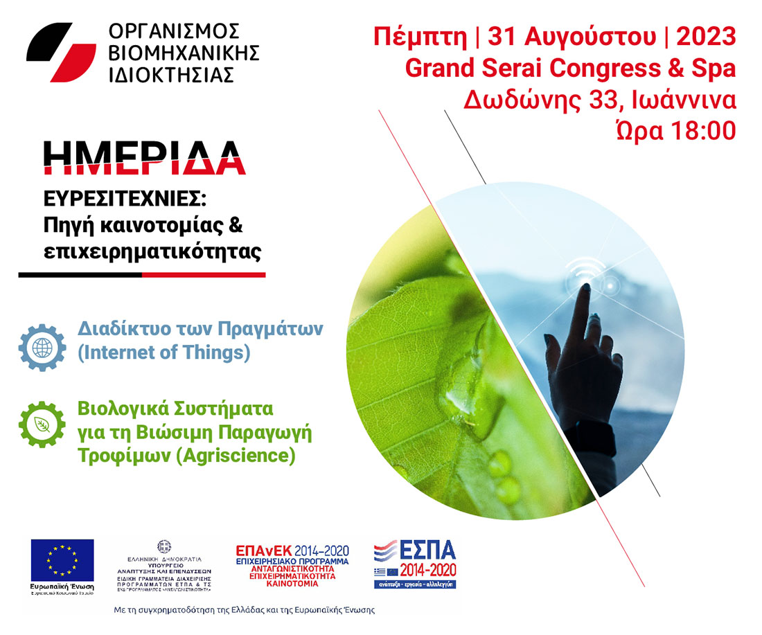 Ο Οργανισμός Βιομηχανικής Ιδιοκτησίας (ΟΒΙ), διοργανώνει ημερίδα την Πέμπτη 31 Αυγούστου, στις 18:00 το απόγευμα στο ξενοδοχείο GRAND SERAI Congress & Spa, στα Ιωάννινα.