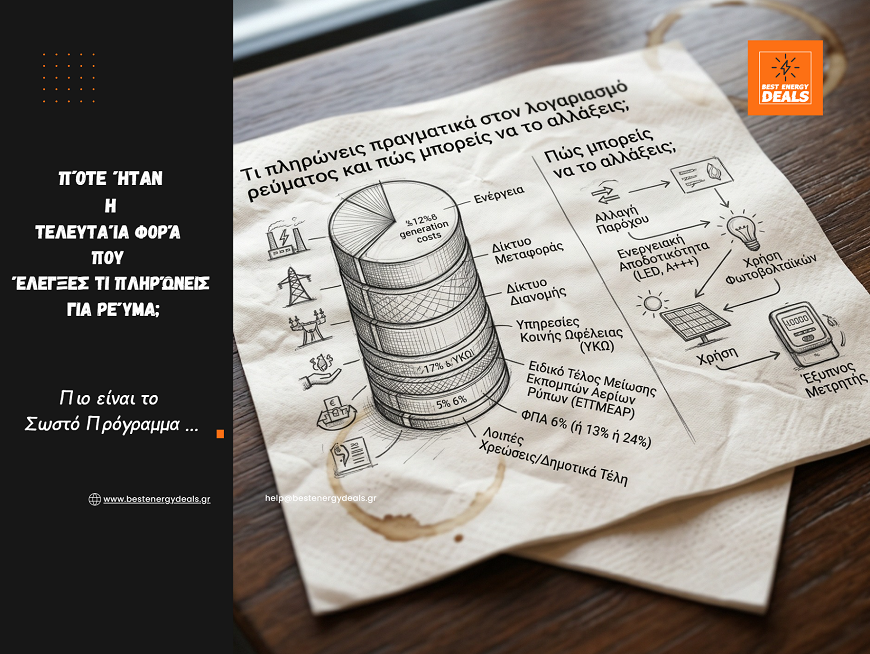 Πάρε τον τελευταίο λογαριασμό σου. Κοίτα τι γράφει. Σύγκρινε. Αν βρεις κάτι καλύτερο, προχώρα. Αν δεν βρεις, τουλάχιστον ξέρεις ότι πληρώνεις σωστά. Λίγα λεπτά αρκούν. Η πληροφόρηση είναι δωρεάν. Η αδράνεια, όχι.