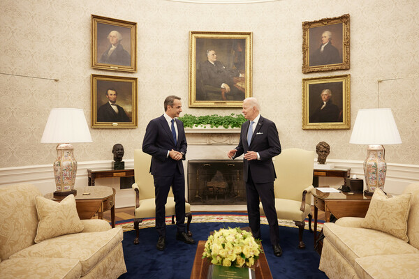 Η Δημοκρατία, η ακρίβεια στην ενέργεια, η πιθανή αγορά μαχητικών F–35 από την Ελλάδα, αλλά και η τουρκική προκλητικότητα βρέθηκαν στo επίκεντρο της συνάντησης του Έλληνα πρωθυπουργού με τον Αμερικανό Πρόεδρο.