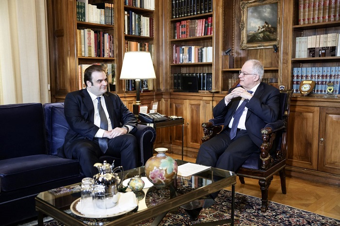 Οι εξελίξεις και οι προοπτικές της ελληνικής οικονομίας, σε συνδυασμό με τις βασικές προκλήσεις που αντιμετωπίζει η Ευρώπη συνολικά, αποτέλεσαν αντικείμενο συζήτησης στη συνάντηση που είχε ο Πρόεδρος της Δημοκρατίας, Κωνσταντίνος Τασούλας με τον υπουργό Εθνικής Οικονομίας και Οικονομικών και πρόεδρο του Eurogroup, Κυριάκο Πιερρακάκη. Η συνάντηση πραγματοποιήθηκε ενόψει της πρώτης συνεδρίασης του Eurogroup με τη νέα του σύνθεση, η οποία θα πραγματοποιηθεί την ερχόμενη Δευτέρα, υπό την ελληνική προεδρία.