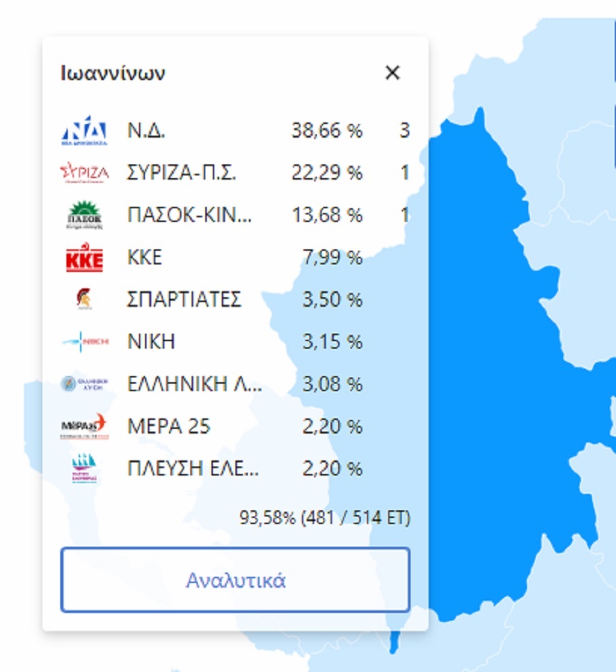Σε ποσοστό ενσωμάτωσης 29,53% (6.710 / 22.722 ΕΤ) στους Δήμους του Νομού Πρεβέζης προηγούνται οι εξής: Ζηρού Ζυγούρης Γεώργιος ΜΑΖΙ ...
