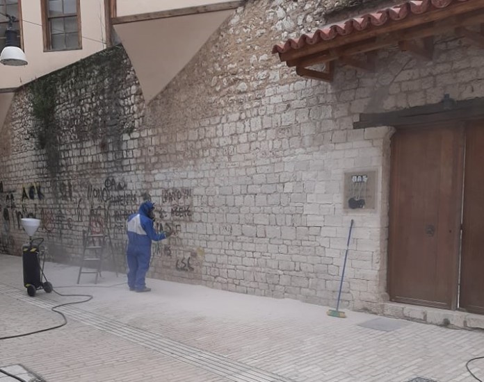 Καθαρό και απαλλαγμένο από γκράφιτι και συνθήματα παραδίδεται το εμβληματικό «Αρχοντικό Πυρσινέλλα». Οι προσόψεις του κτιρίου είχαν καλυφθεί με χρώματα ...