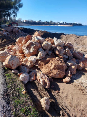 Ιδιαίτερη αναφορά γίνεται στο γεγονός ότι, σε μεγάλο τμήμα της ακτής, τα υλικά που χρησιμοποιήθηκαν για το μπάζωμα και τη δημιουργία σταθερής βάσης για τον ποδηλατόδρομο πάνω στο αμμώδες έδαφος έχουν πλέον αποκαλυφθεί, διασκορπιστεί και παραμείνει εγκαταλελειμμένα. Μάλιστα, μέρος αυτών έχει μετακινηθεί και απλωθεί μέσα στον αιγιαλό, με αποτέλεσμα η ορατή αλλοίωση να εκτείνεται σε μήκος περίπου δύο χιλιομέτρων.