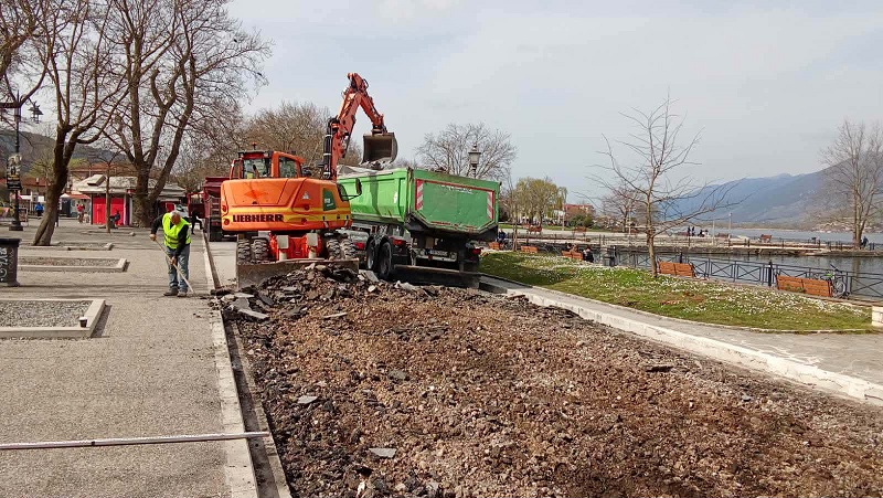 Ο δρόμος μπροστά από τις καφετέριες έκλεισε προκειμένου να σκαφτεί και να γίνουν οι απαραίτητες εργασίες για να πέσει καινούρια άσφαλτος.