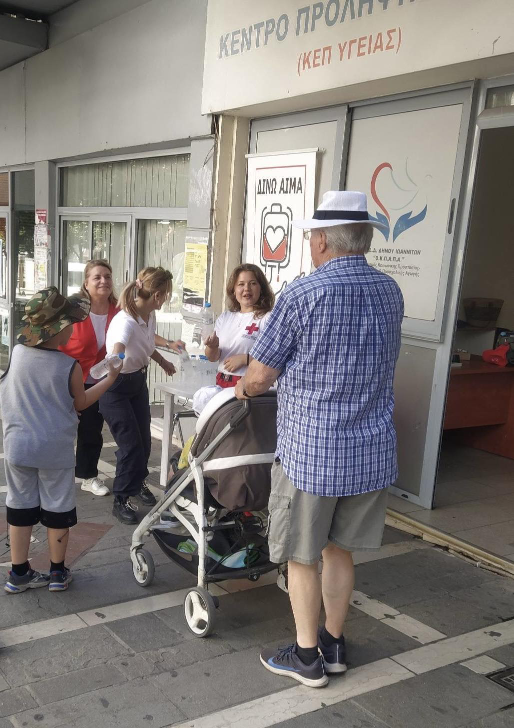 Το ΚΕΠ Υγείας του Δήμου, σε συνεργασία με το Περιφερειακό Τμήμα Ιωαννίνων του Ελληνικού Ερυθρού Σταυρού, διένειμε δωρεάν νερά το Σαββατοκύριακο, τόσο έξω από το ΚΕΠ όσο και σε κεντρικά σημεία της πόλης, παρέχοντας δροσιά και ανακούφιση σε περαστικούς και επισκέπτες κατά τις ώρες υψηλής θερμικής καταπόνησης.