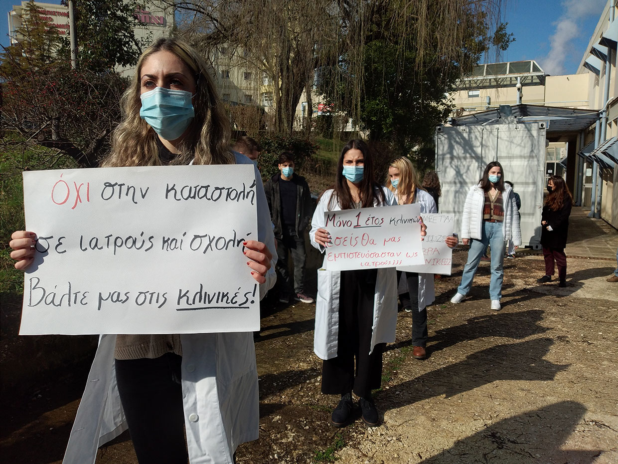 «Οι φοιτητές του 5ου έτους έχουμε κάνει κλινικό έργο για ένα εξάμηνο και από πέρυσι έχουμε παραγκωνιστεί τελείως. Δε βλέπουμε καν να υπάρχει συζήτηση για εμάς, ούτε έστω κάποια διάθεση να βοηθήσουν την κατάσταση», πρόσθεσε.
