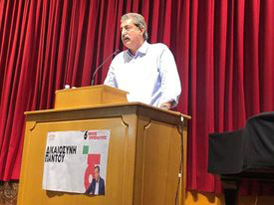 Στην ανοιχτή πολιτική εκδήλωση στην αίθουσα της Ε.Η.Μ, ο Παύλος Πολάκης ήταν ο κύριος εισηγητής του κυβερνητικού προγράμματος των «Έξι Θέσεων» του ΣΥΡΙΖΑ-Π.Σ, έτσι όπως αναπτύχθηκαν από τον Πρόεδρο του κόμματος Αλέξη Τσίπρα στη ΔΕΘ τον Σεπτέμβριο.