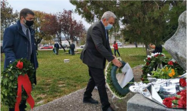 θέσεις στεφάνων από εκπρόσωπους πολιτικών κομμάτων, φορείς και συλλογικότητες με αυστηρή τήρηση των μέτρων και των αποστάσεων.