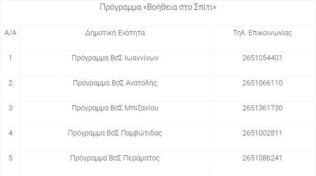Υπενθυμίζεται ότι υπάρχει η γραμμή έκτακτης ανάγκης του Δήμου Ιωαννιτών και του Ο.Κ.Π.Α.Π.Α. που λειτουργεί από τις 8:00 το πρωί έως και τις 15:00 το μεσημέρι στο τηλ.2651054269, όπου κυρίαρχο σκοπό έχει την καταγραφή και εξυπηρέτηση αναγκών ευπαθών μοναχικών ατόμων λόγω της πανδημίας.