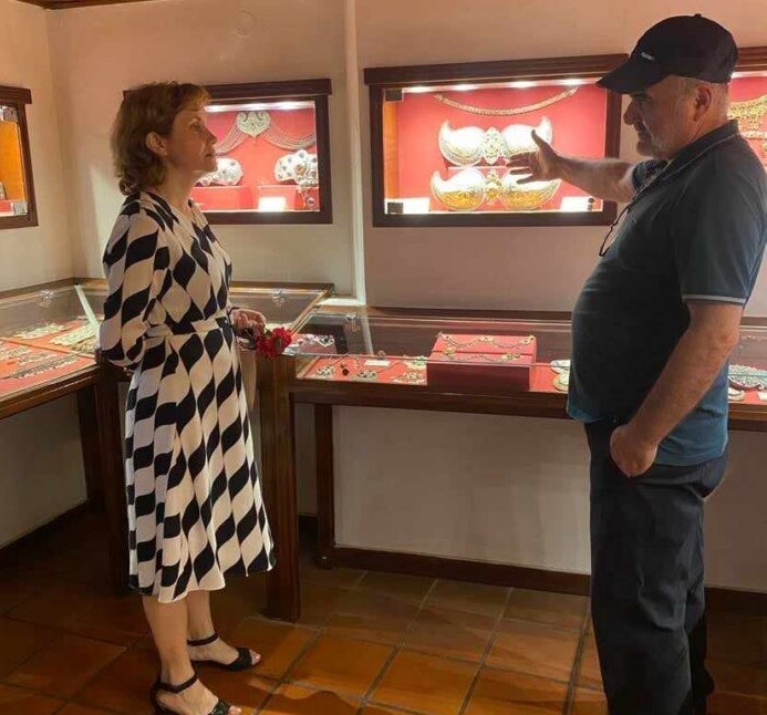 Κατά τη διάρκεια της ξενάγησης, η κα Laci είχε την ευκαιρία να δει από κοντά τα σημαντικά ιστορικά κειμήλια της συλλογής Ραπακούση που το Μουσείο στεγάζει και τα οποία ανασυνθέτουν τον ιστορικό και πνευματικό βίο της Ηπείρου από τον 18o αιώνα και εξής. Ο κ. Ραπακούσης αναφέρθηκε στην πλούσια ιστορία και παράδοση της περιοχής, ενώ η κα Laci εξέφρασε τον ενθουσιασμό της για την αξία και τη σημασία του Μουσείου στην ανάδειξη, προώθηση και διατήρηση της πολιτιστικής κληρονομιάς του τόπου.